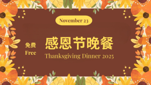时间:11/23 弥撒后 5:30pm 地点:Paish Hall